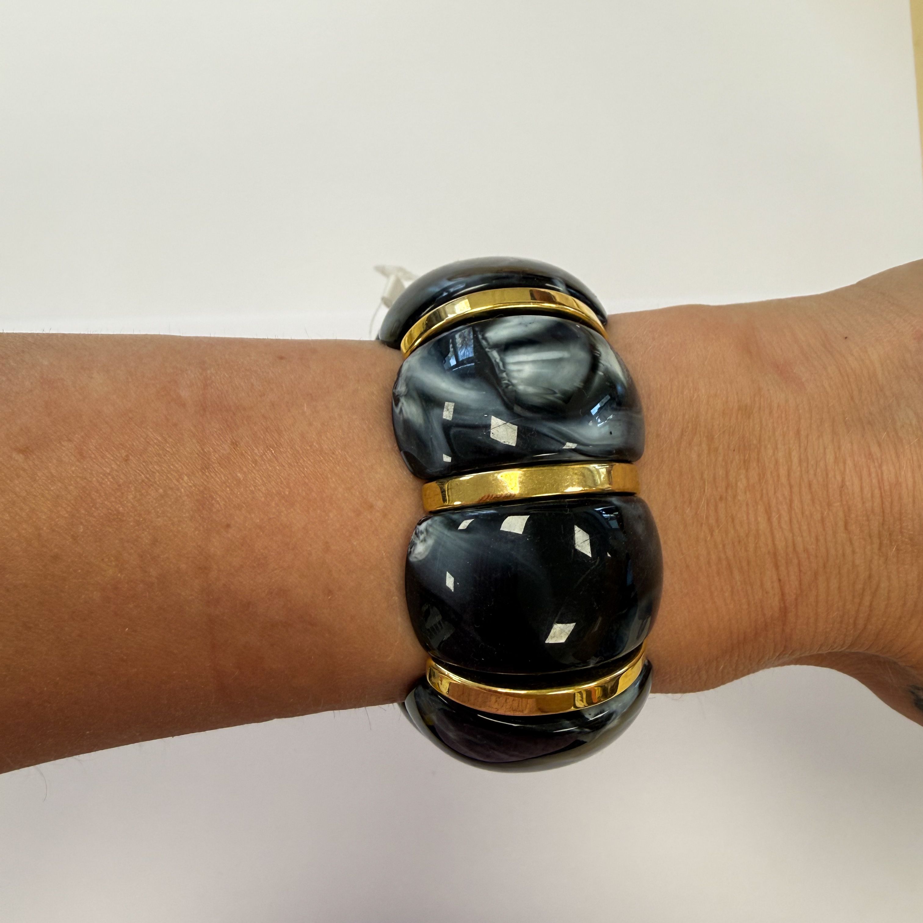 Stilinga, aukso spalvos detalėmis dekoruota apyrankė.