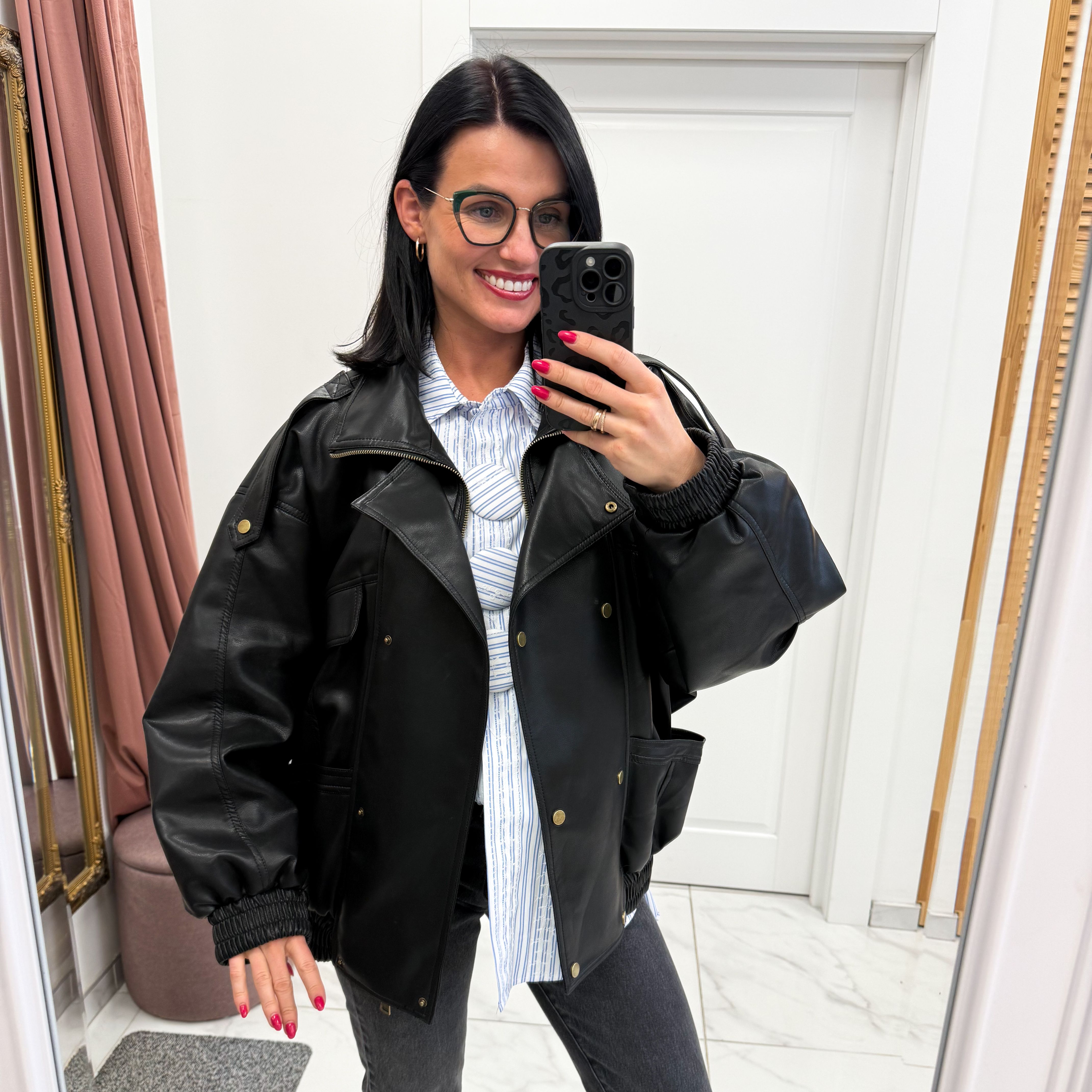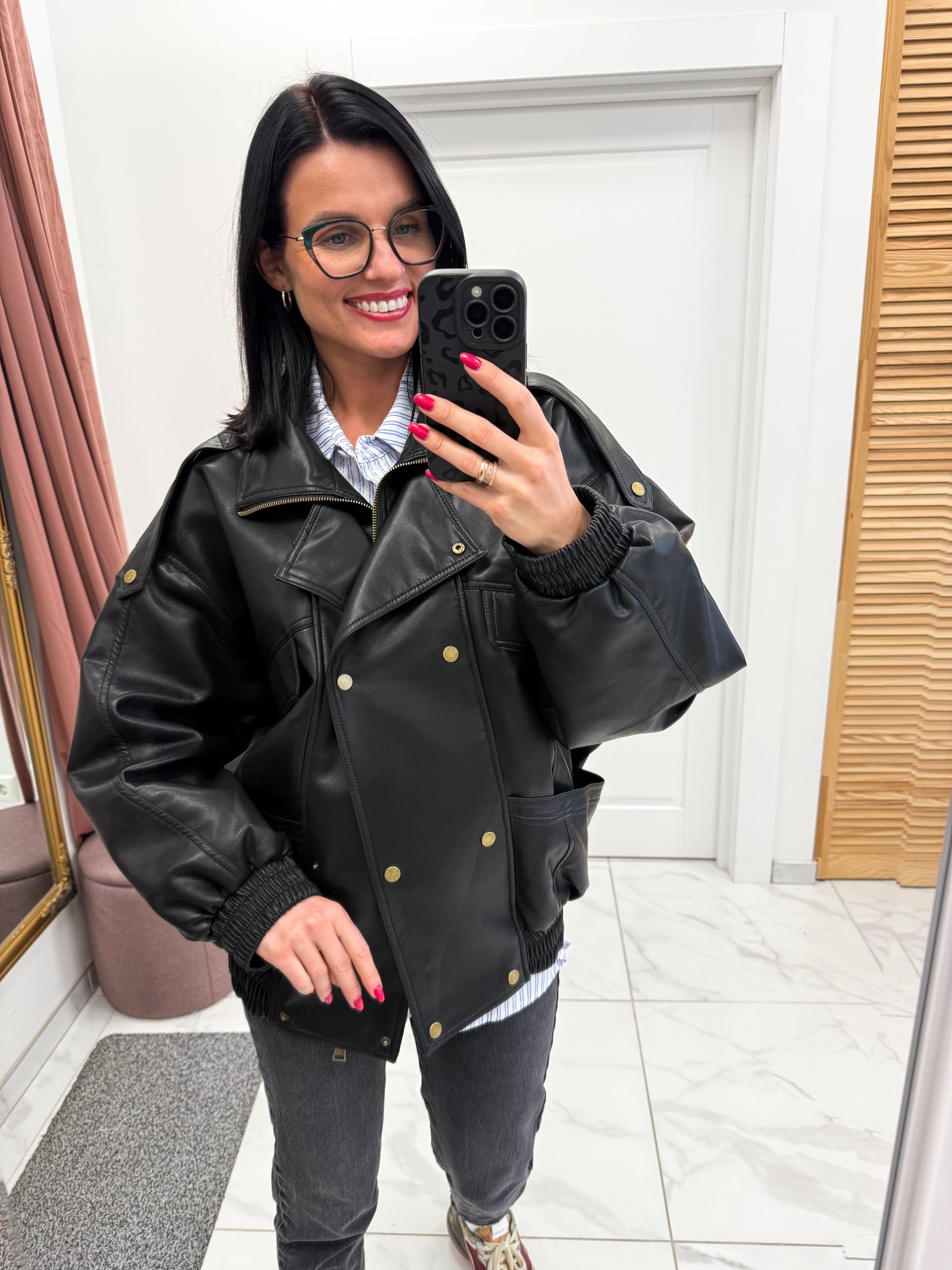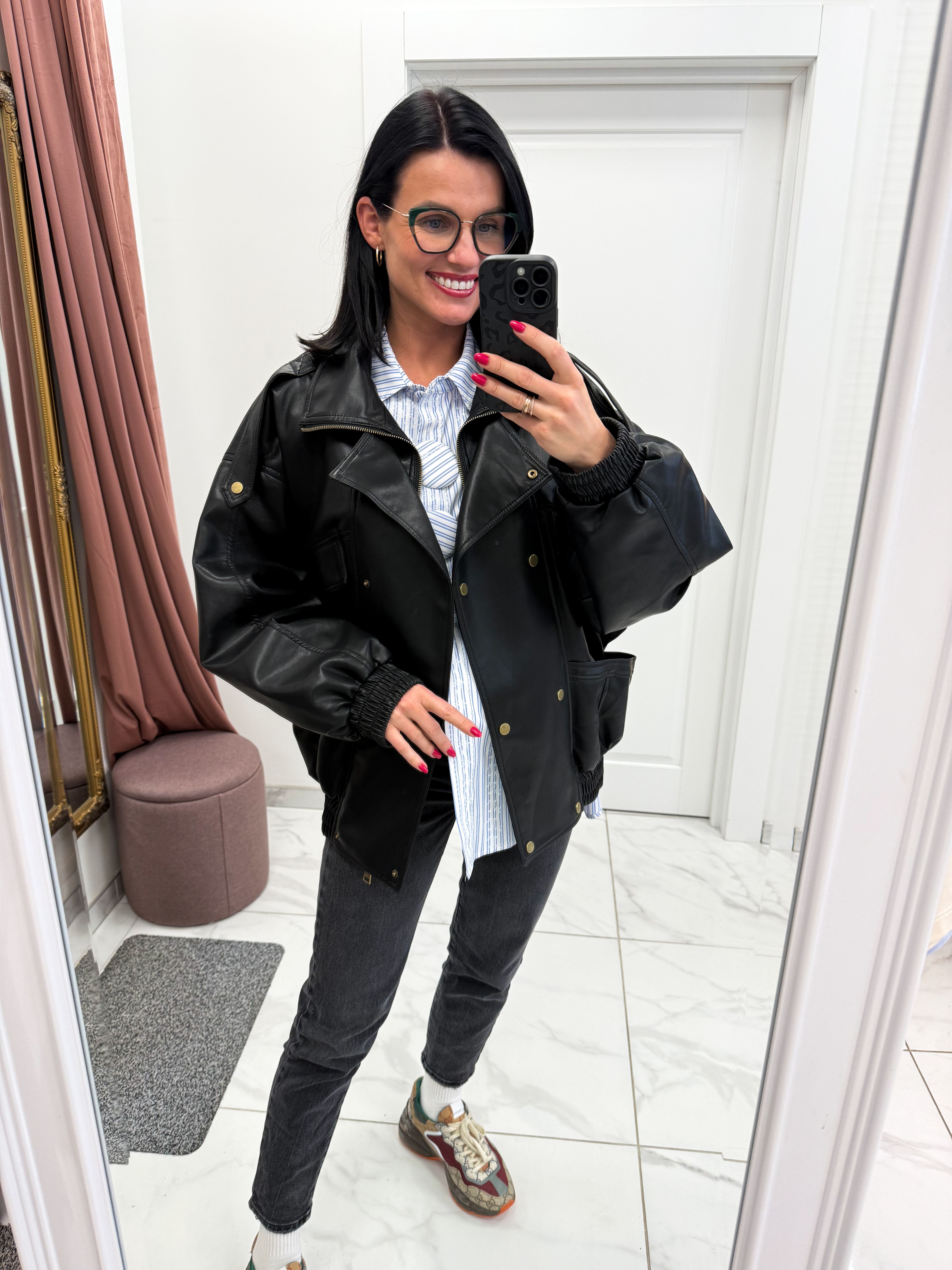 Stilinga, išskirtinė, aukštos kokybės, eko odos striukė su pamušalu.