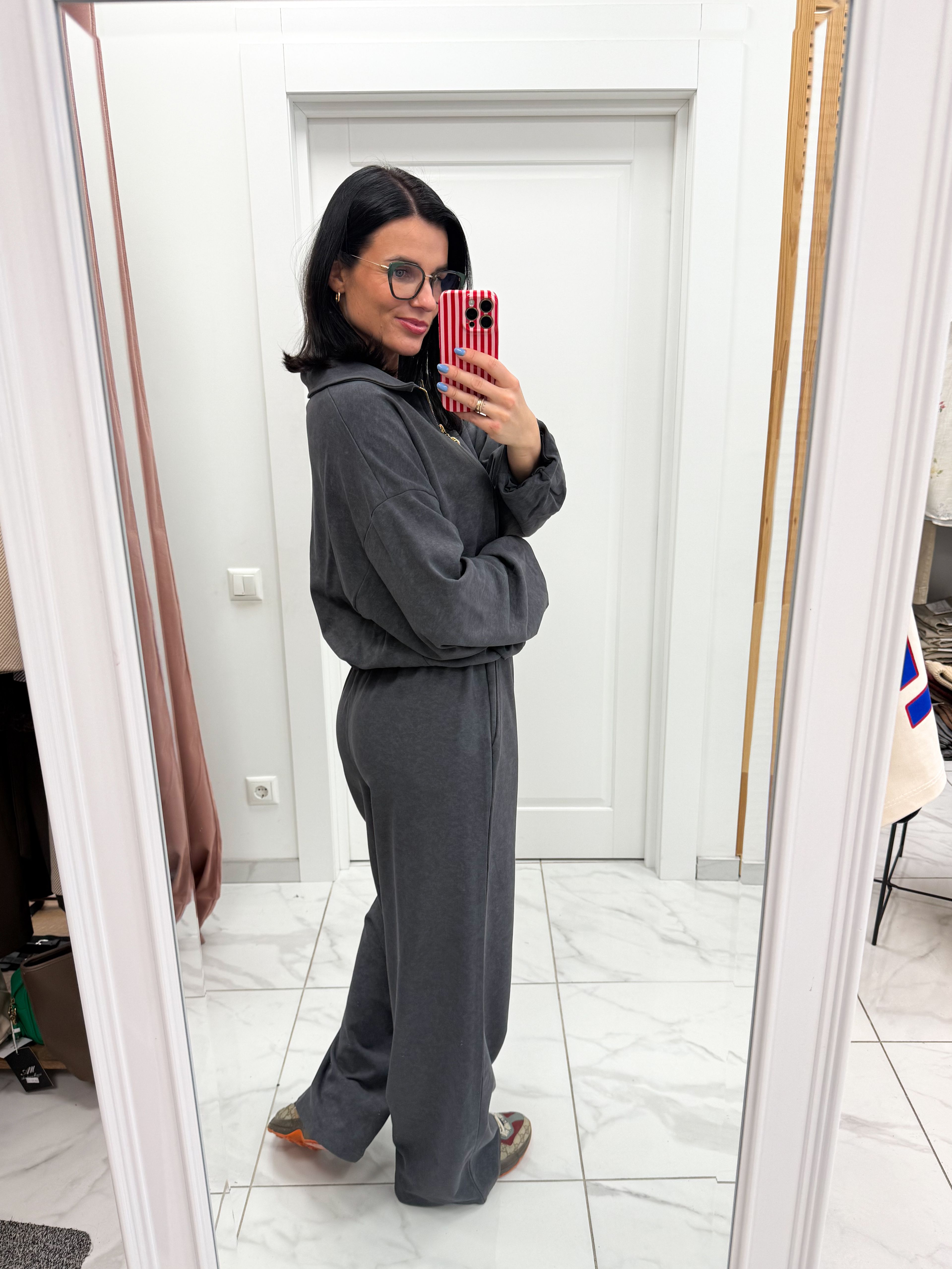 Išmatavimai: džemperis per krūtinę 120cm, ilgis 53cm, kelnių liemuo 70/94cm, klubai 122/134cm, ilgis 111cm