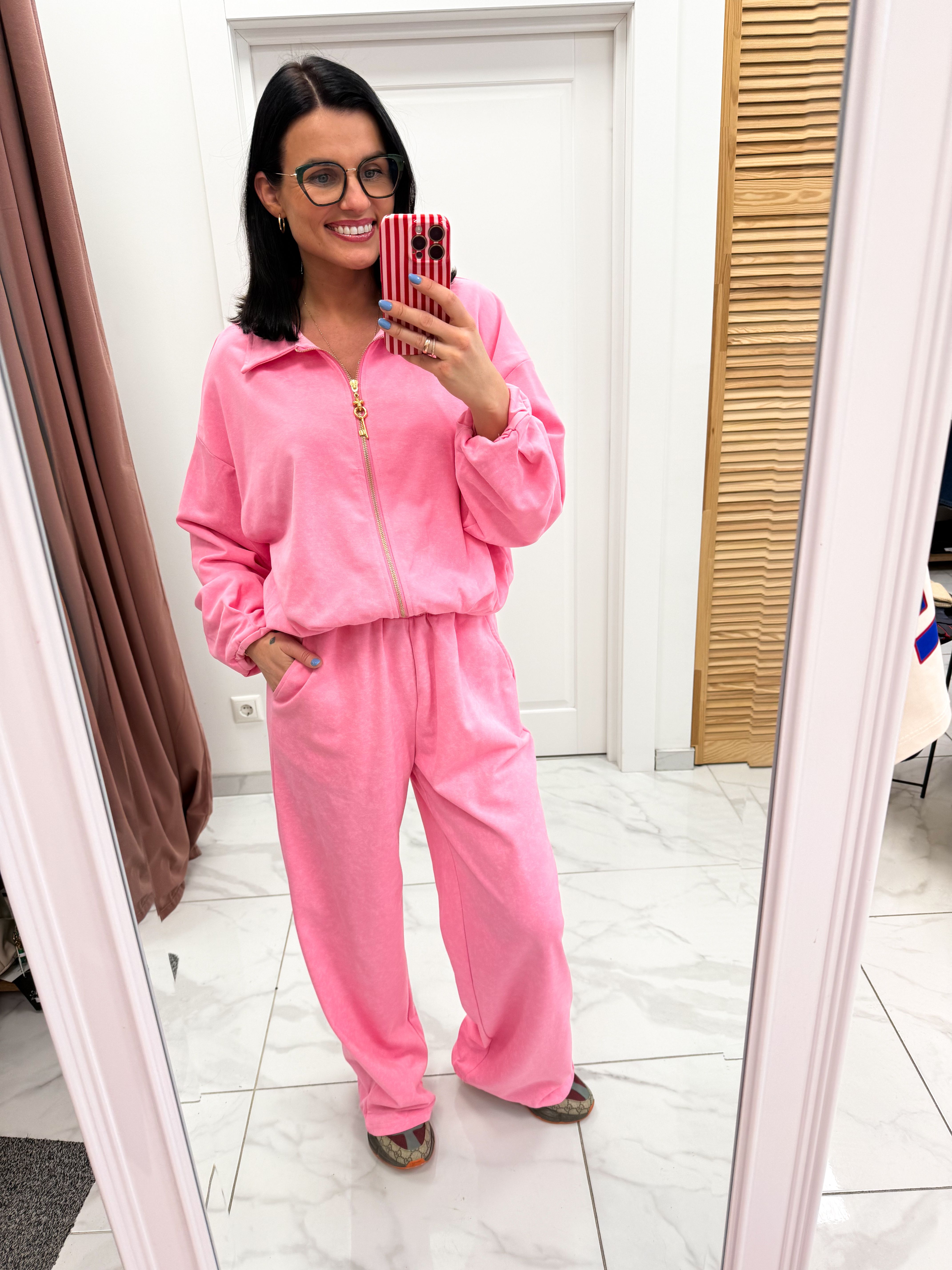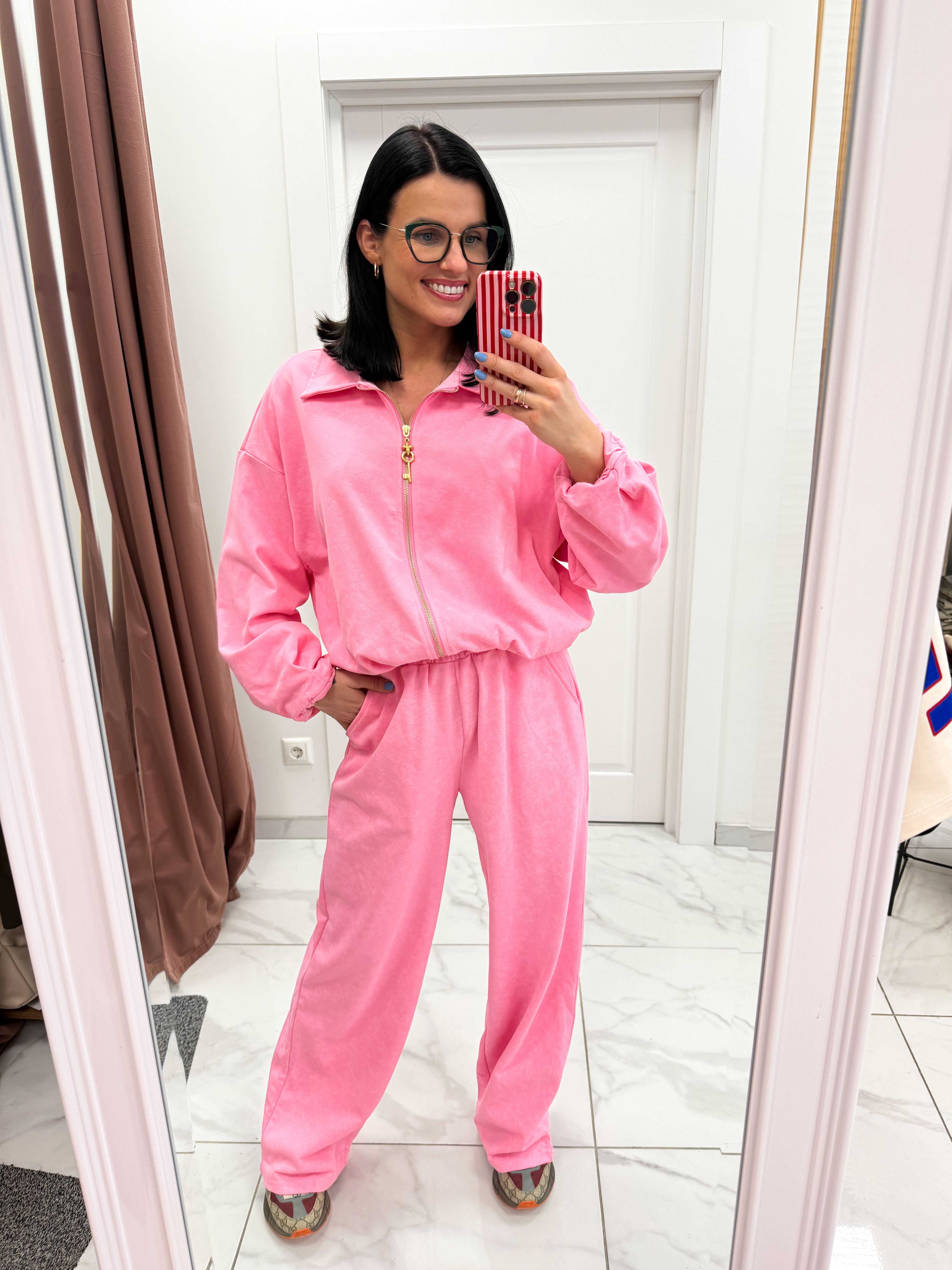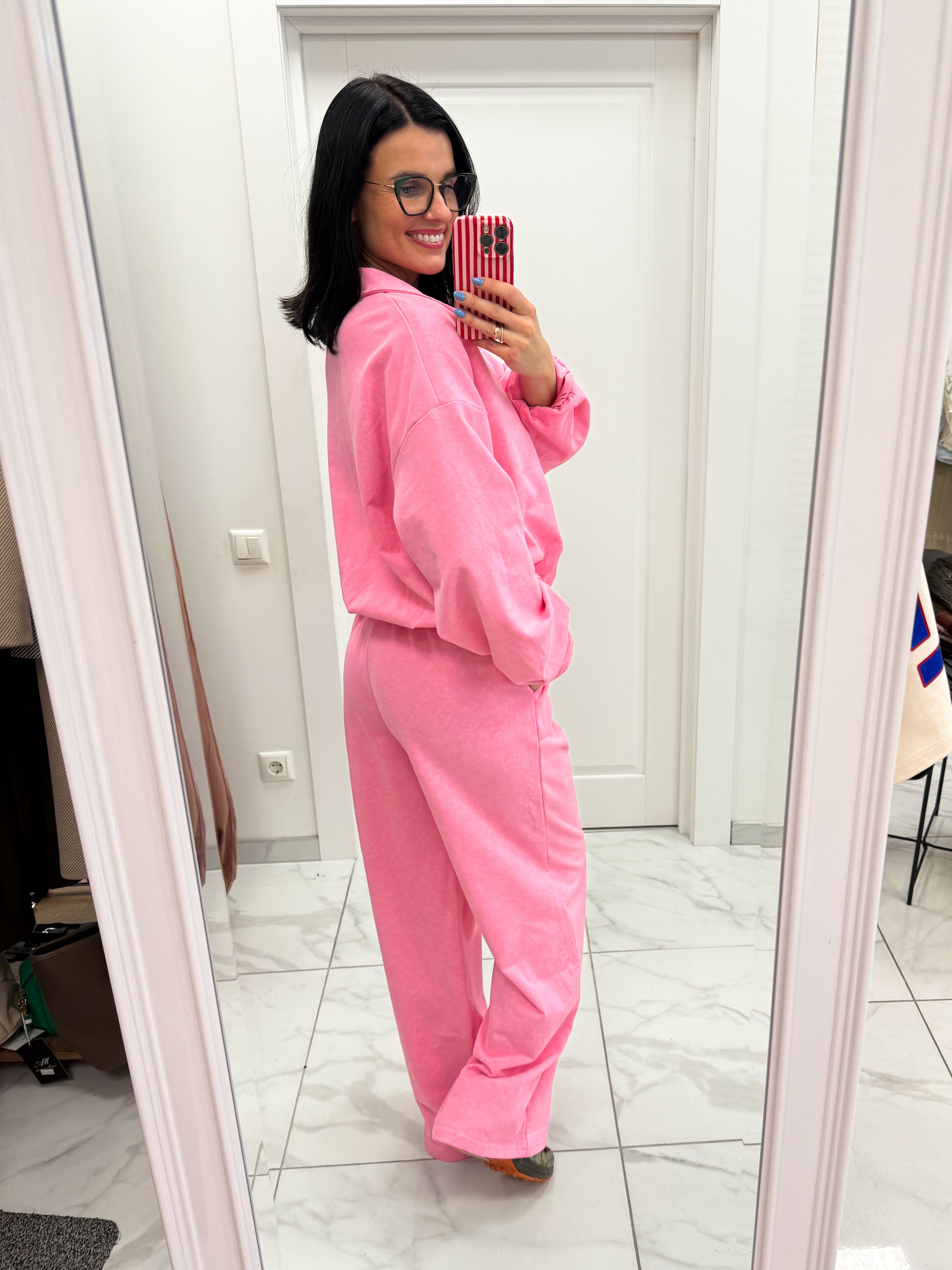 Išmatavimai: džemperis per krūtinę 120cm, ilgis 53cm, kelnių liemuo 70/94cm, klubai 122/134cm, ilgis 111cm