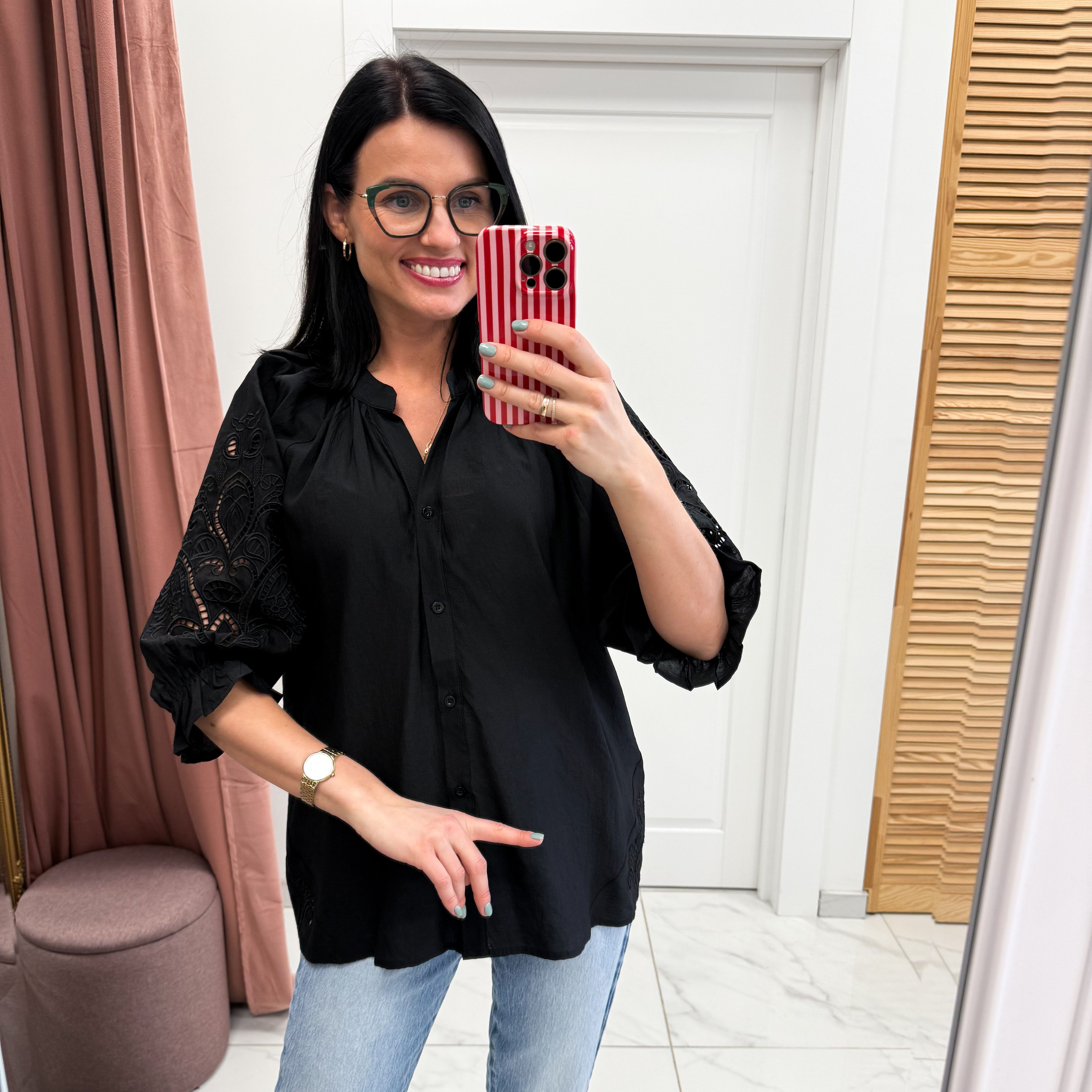 Stilinga, švelni prie kūno, laisvo kritimo palaidinė, puošniomis rankovėmis.