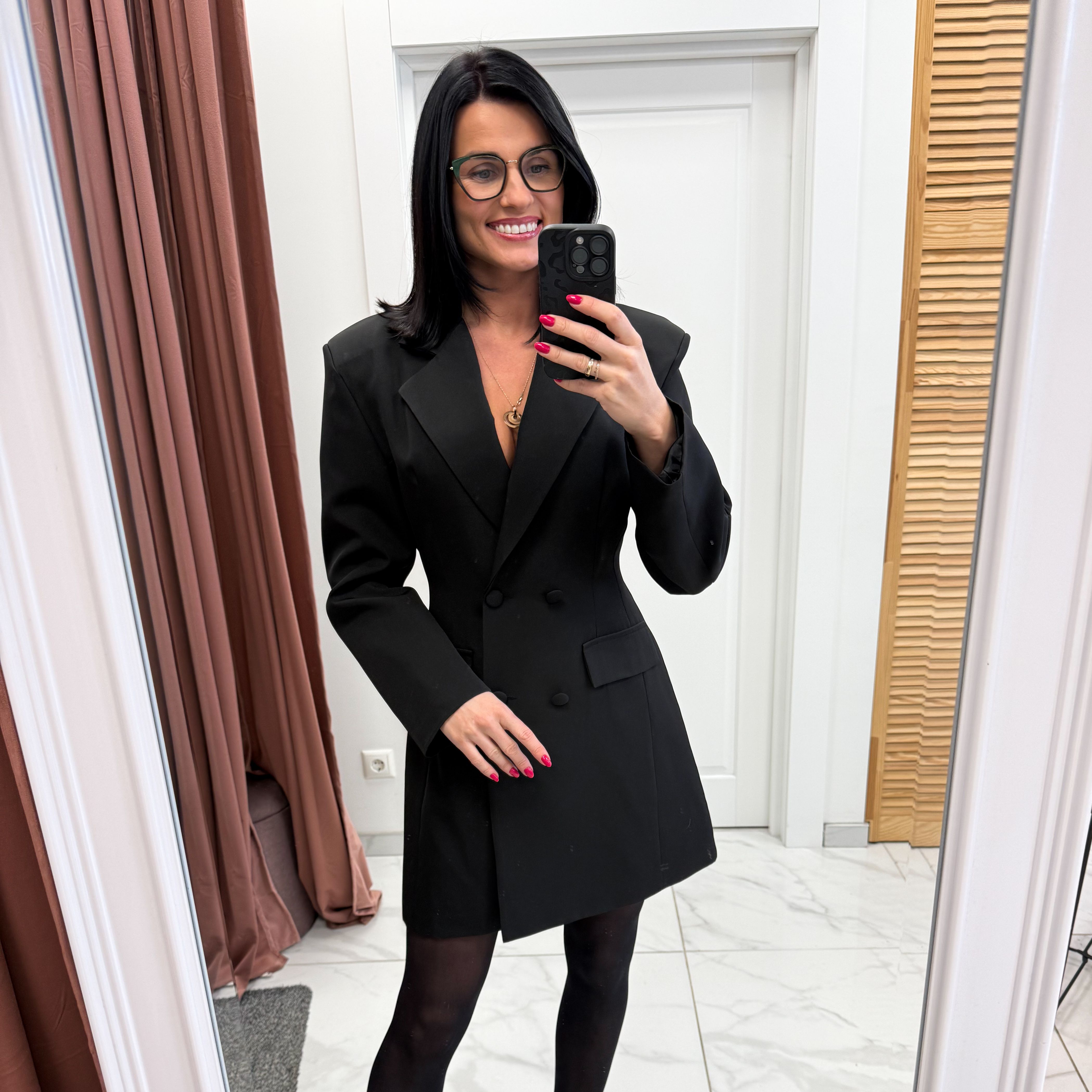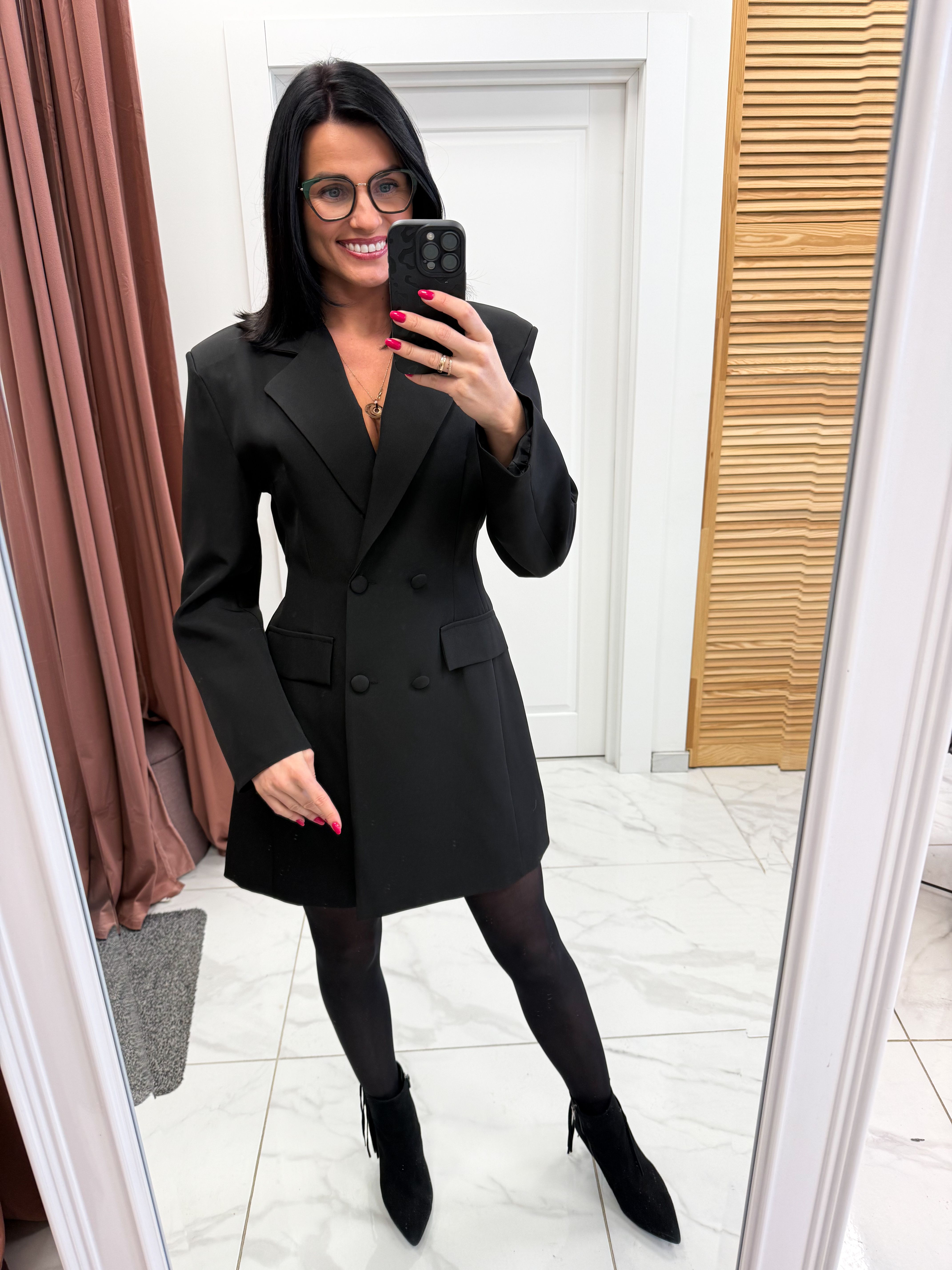 Stlingas ir puošni, švarko stiliaus suknelė.
