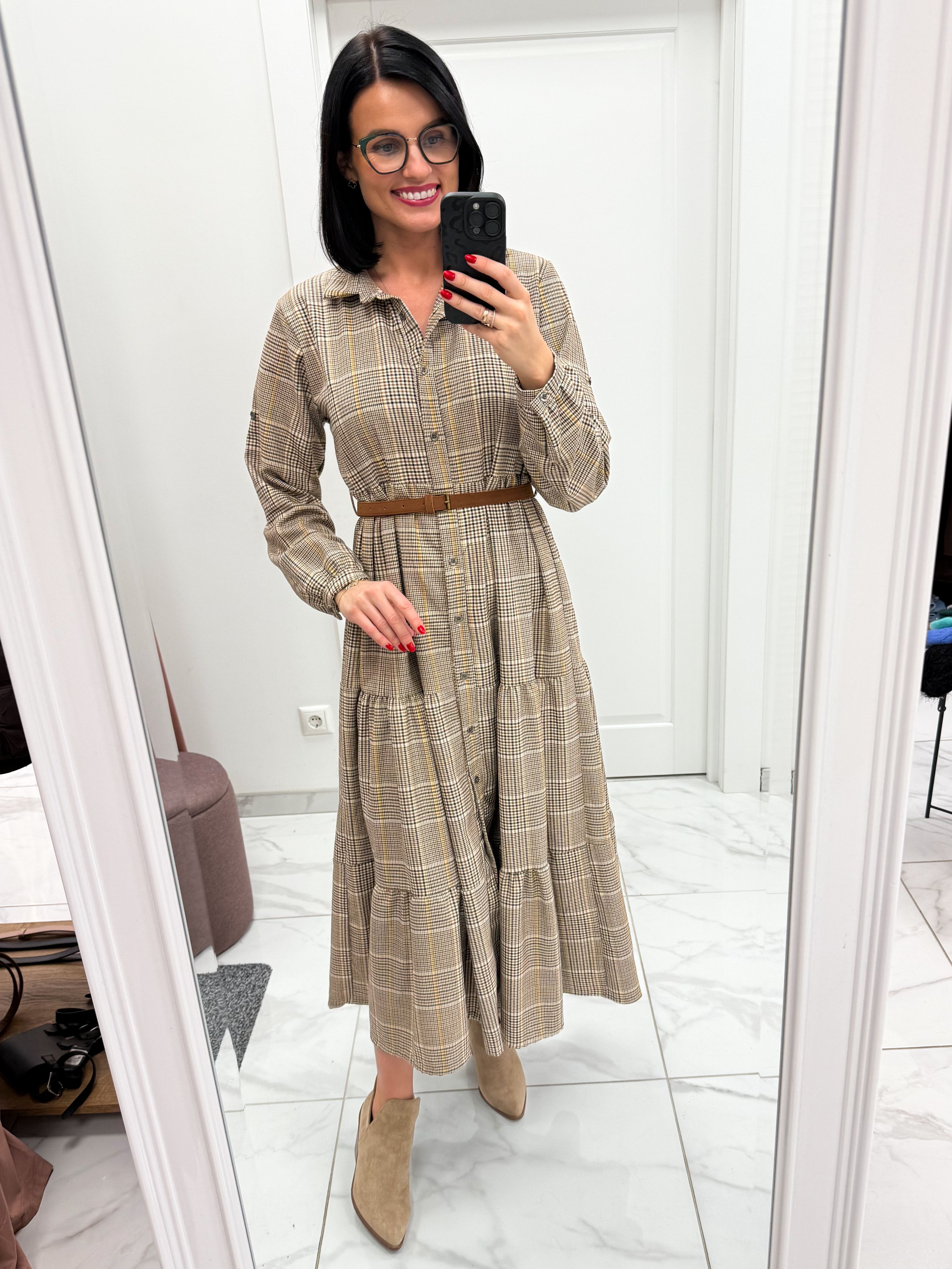 Stilinga ir patogi, itin aukštos kokybės, itališka, laisvo kritimo suknelė su dirželiu per liemenį.