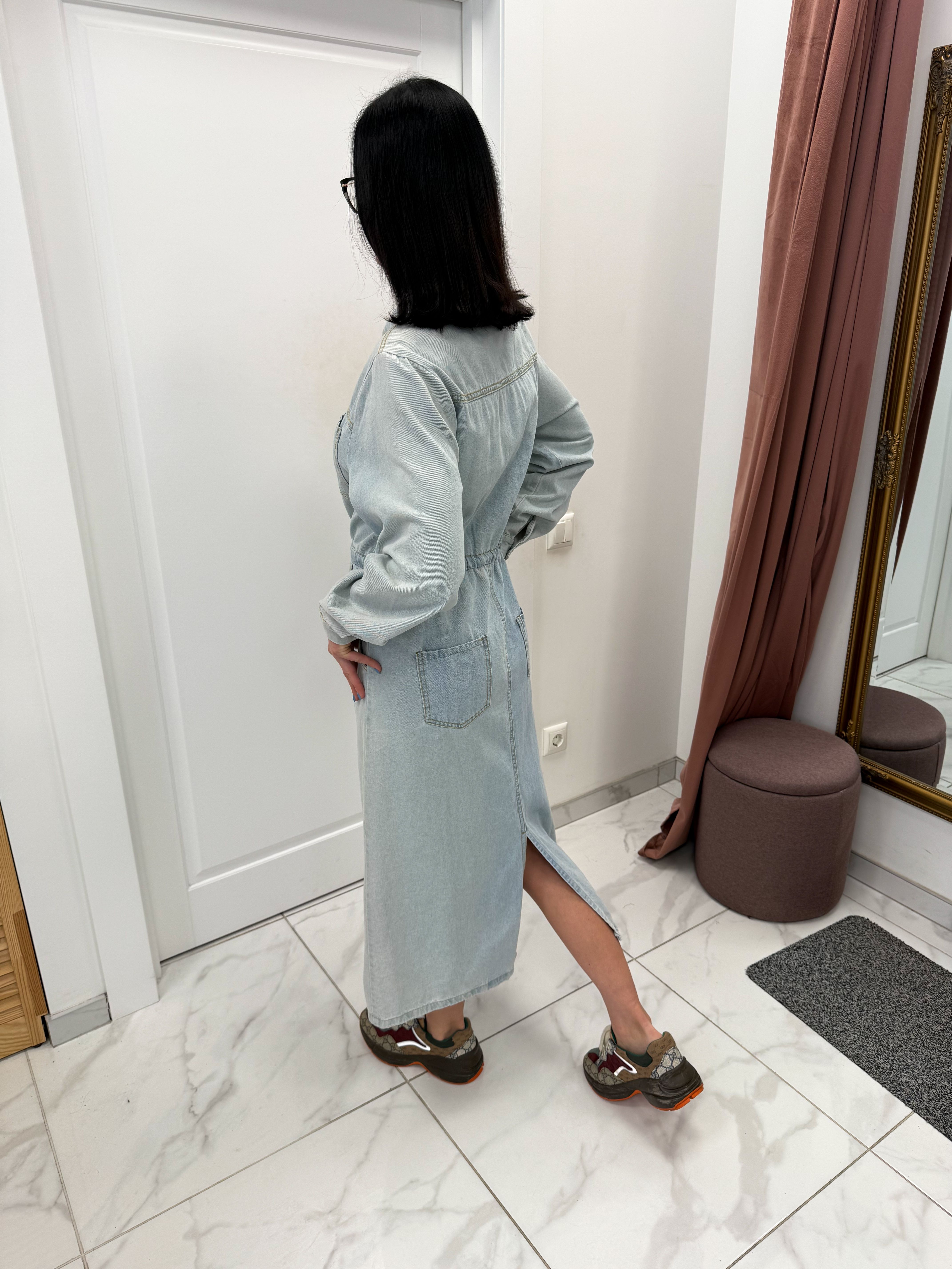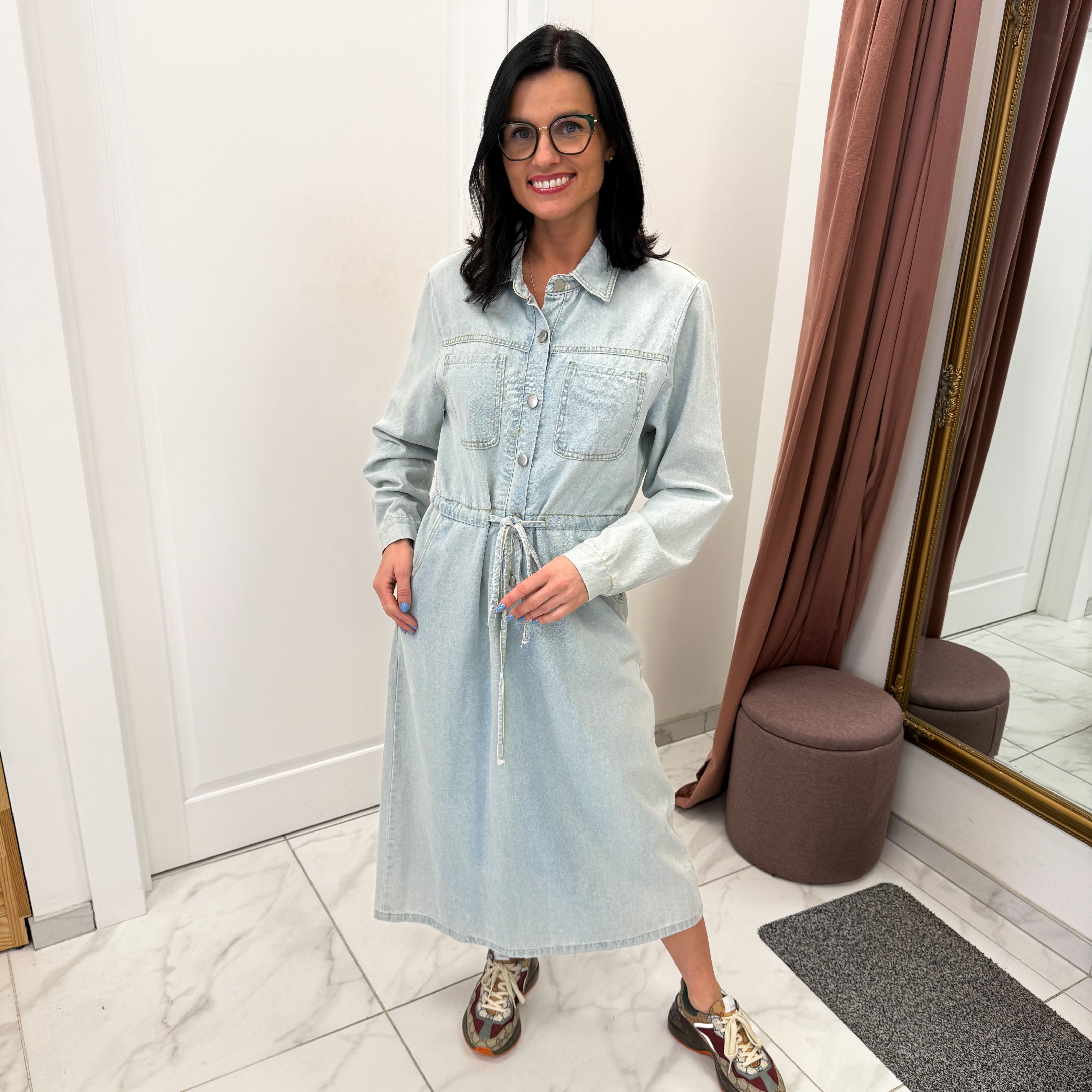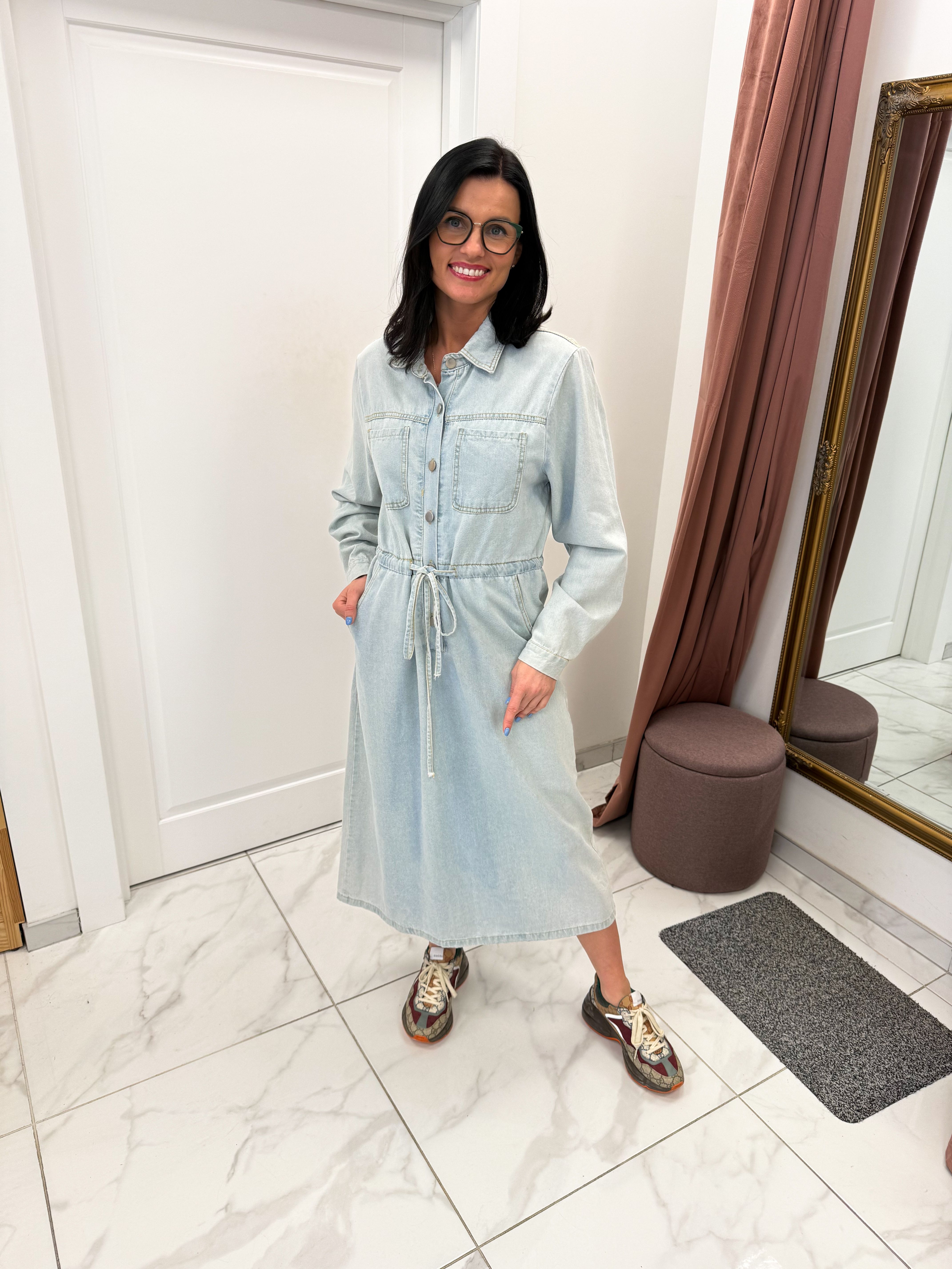 Stilinga ir patogi, itališka džinso suknelė su dirželiu per liemenį.